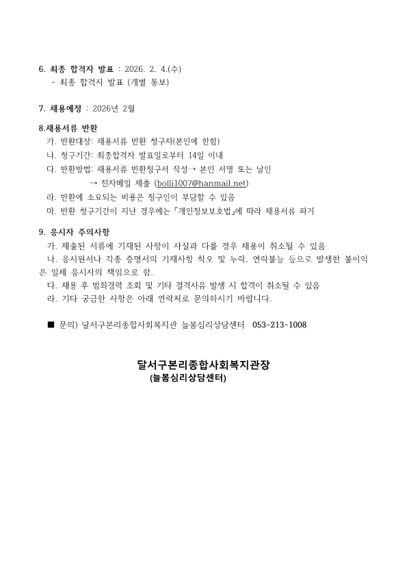 | 다음글 | 2026년 복권기금사업 다독다독공부방 교육지도사 채용공고 |