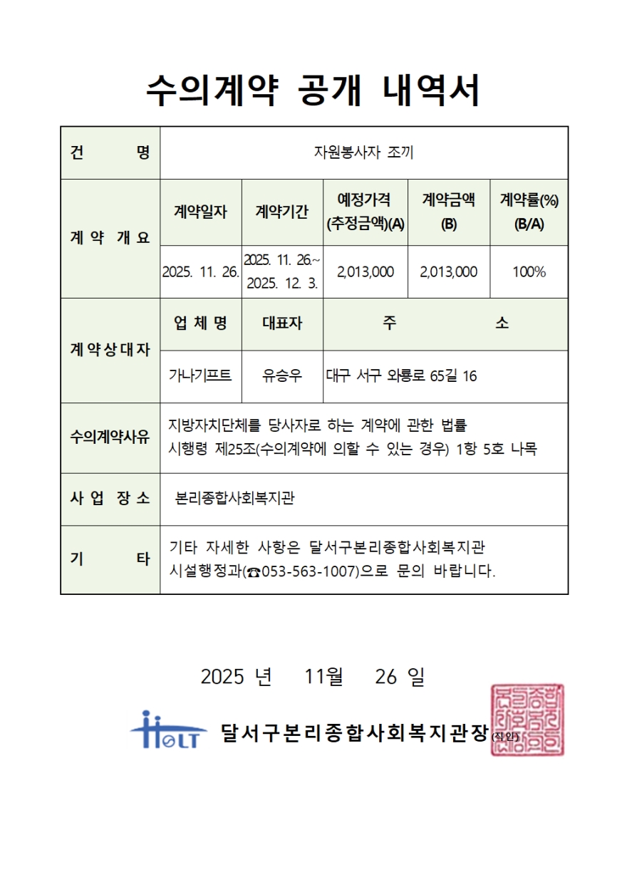 | 2025년 수의계약 공개 내역서(자원봉사자 조끼) |